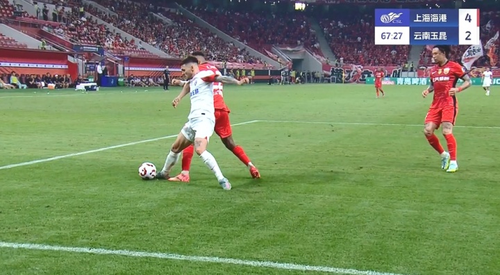 被茹萨踢倒,裁判未有表示,VAR未介入。
