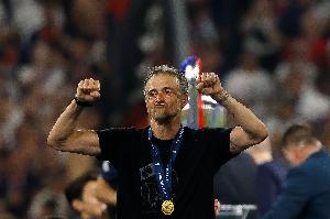 体育资讯6月1日讯 欧冠决赛,巴黎5-0击败国米,捧起冠军奖杯。